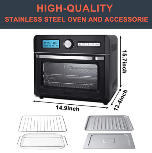 • 【Quartz Heat&Air Fry Technology】--Quartz Heat Technology delivers 40% more even heat for superior cooking results and preheats faster,and you can enjoy air fried meals with up to 85% less fat than traditionally fried foods. Air fry feature may require more cooking time than standalone air fryers.