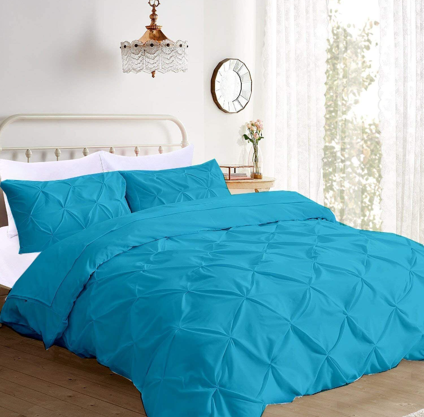3 PC Pinch Pleated Comforter Set Egyptian Cotton 1000 TC All Size & Solid Color