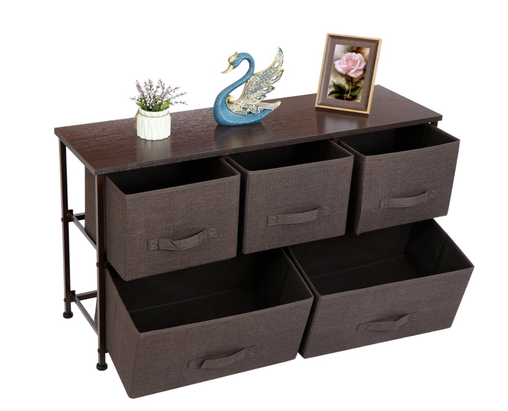 • DETAILS THAT MATTER: Dresser is equipped with 3 small and 2 large drawers. Adjustable levelers ensure stability on uneven surfaces. Plastic feet will not scratch flooring, and they are adjustable for uneven surfaces.