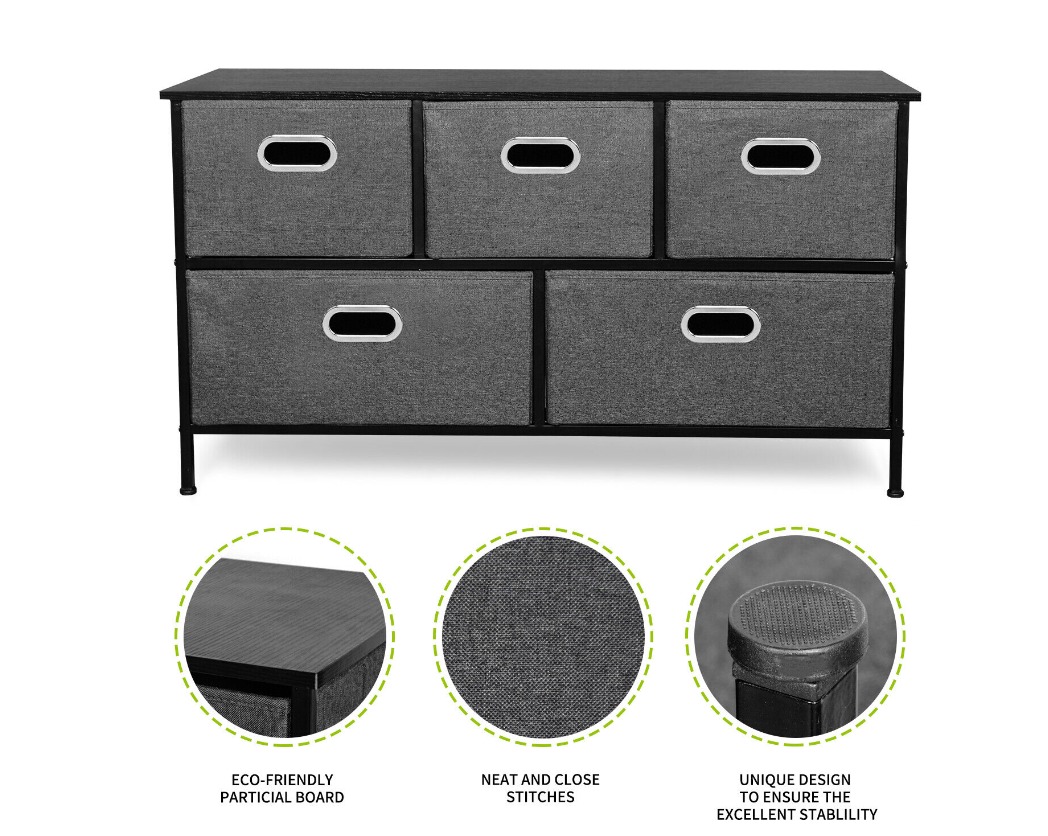 5 Fabric Drawers Storage Cube Bins Dresser Organizer Cabinet Bedroom Living Room