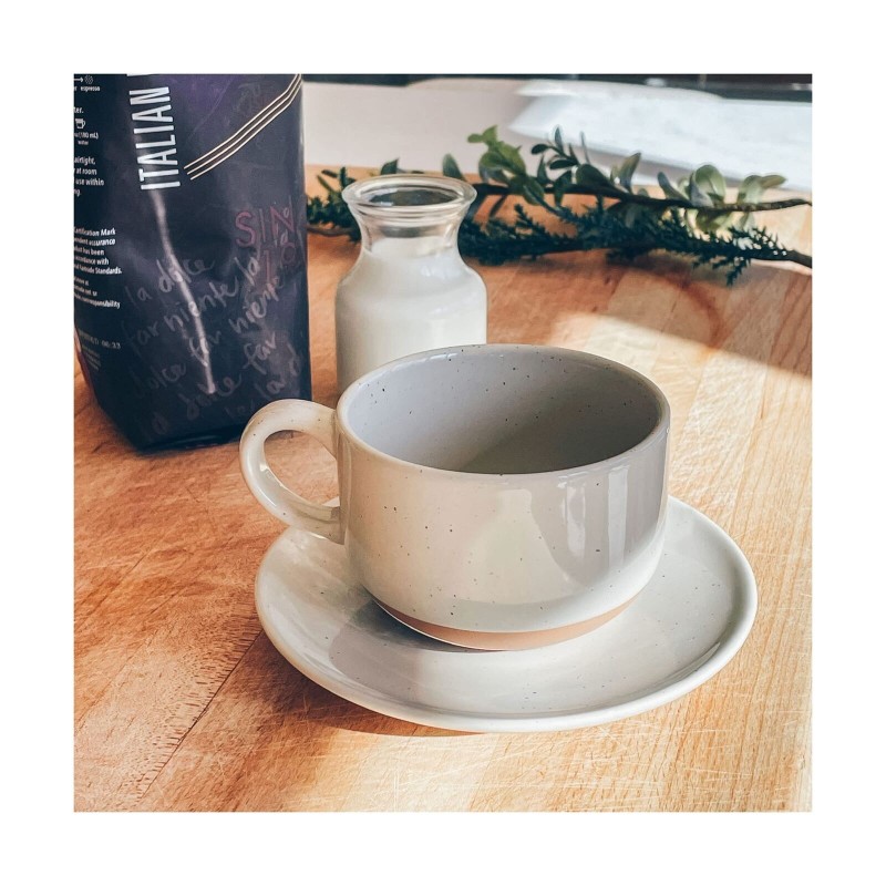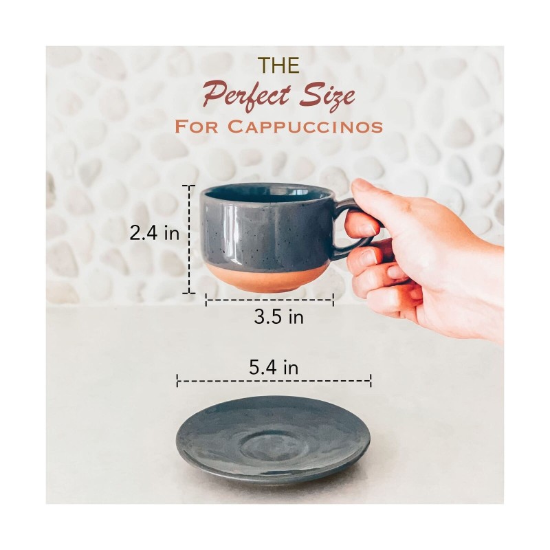 8Oz Cappuccino Mug Set of 4 - Ceramic Coffee Cups with Saucers - Microwave and D