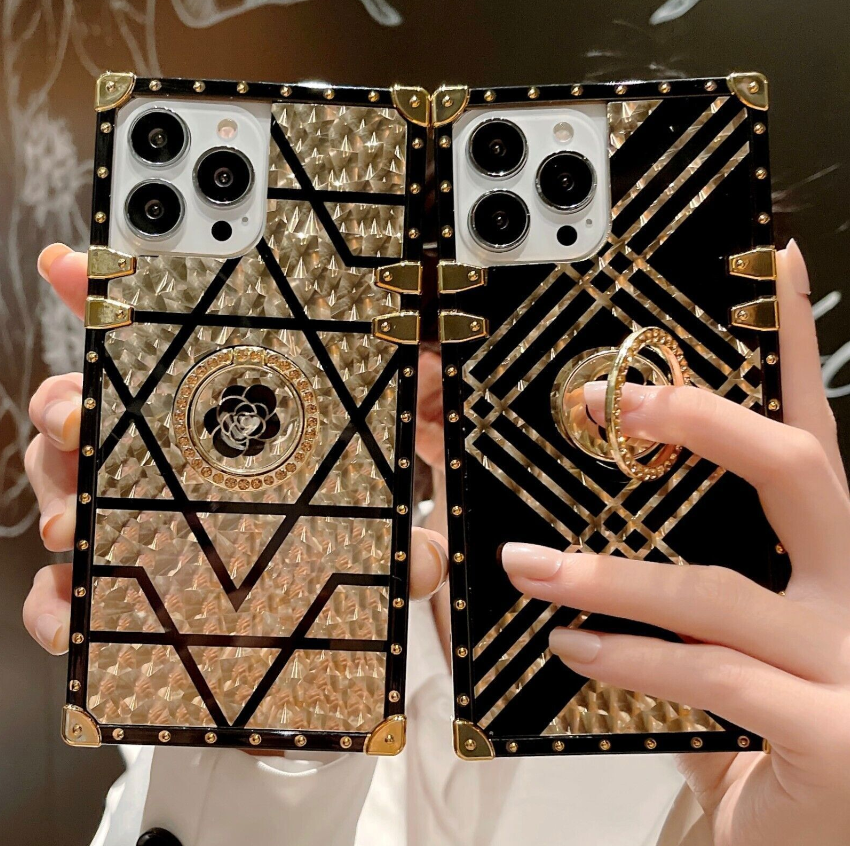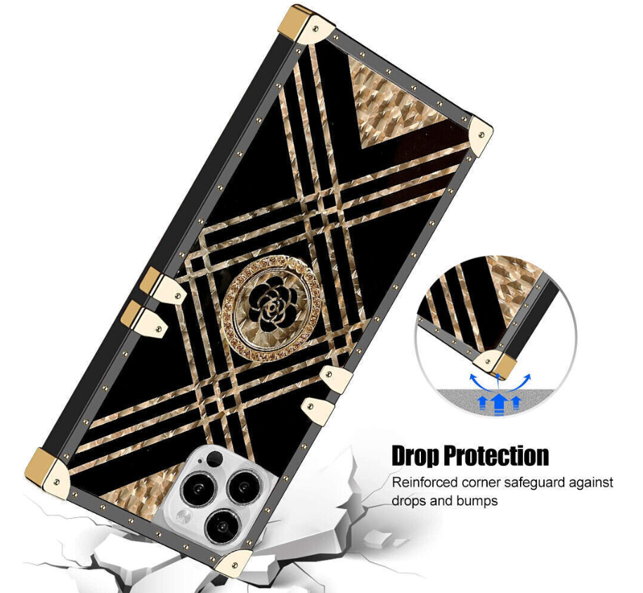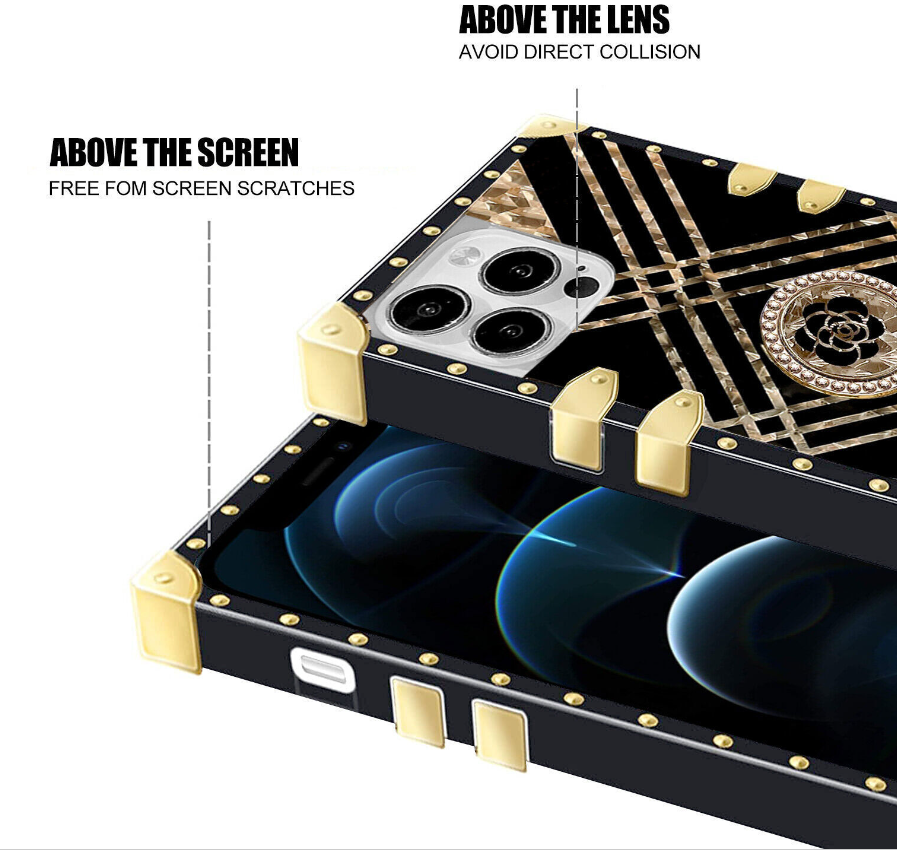 Bling Square Leopard Flower Phone Case For iPhone 14 13 12 11 Pro Max XR 8 7 SE