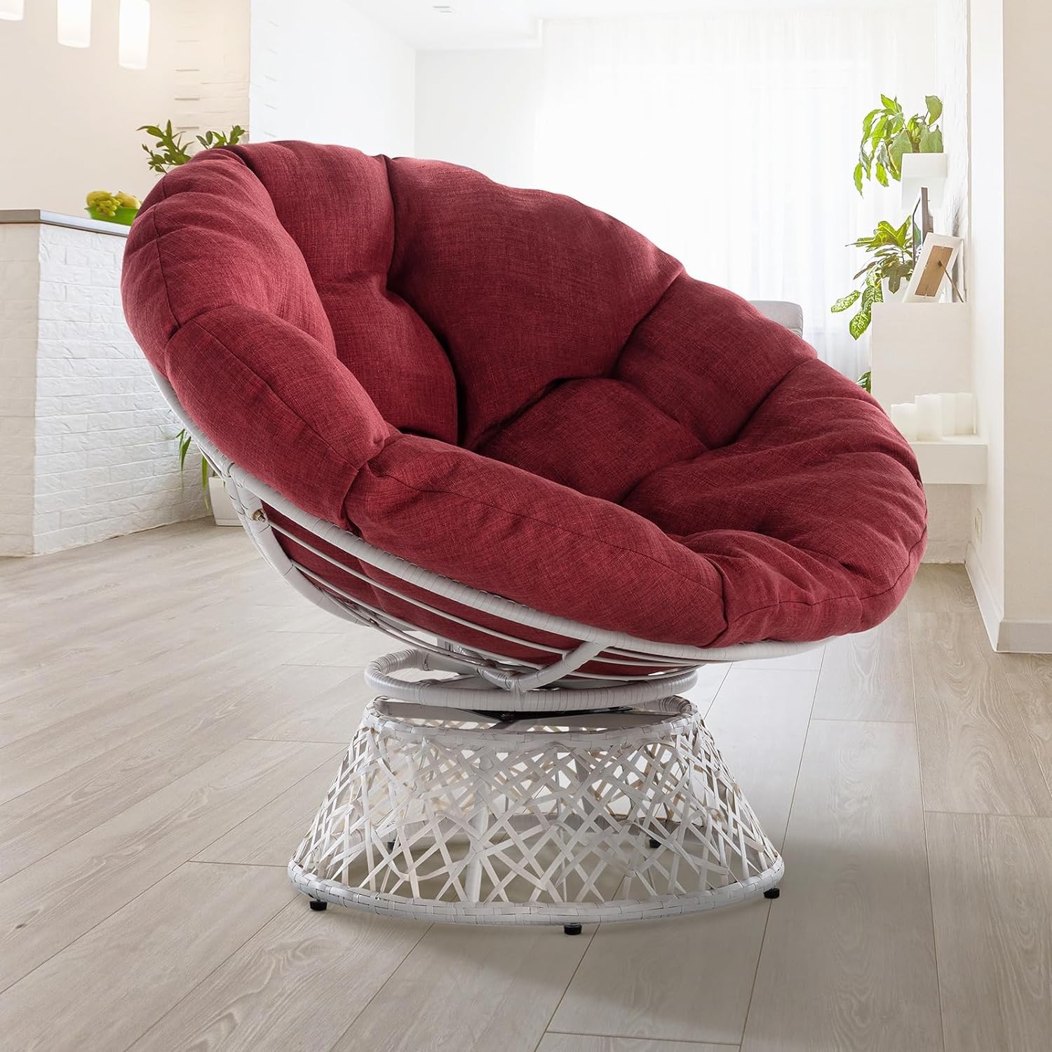 papasan chair with cushion and frame, 360-degree swivel, indoor, outdoor, boho, wicker papasan