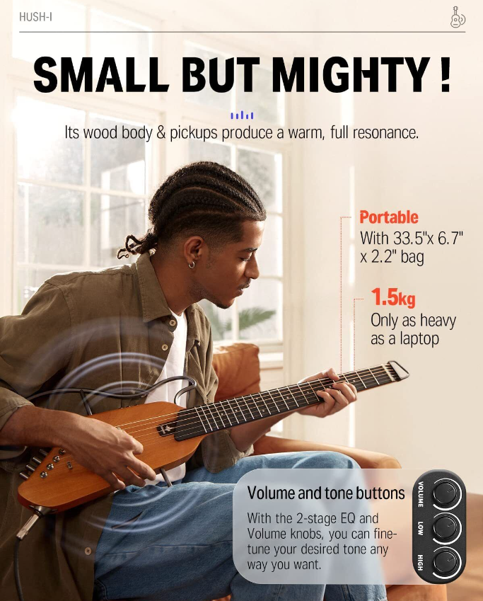 Donner HUSH Acoustic Electric Travel Guitar Headless Silent Pratice | Refurb