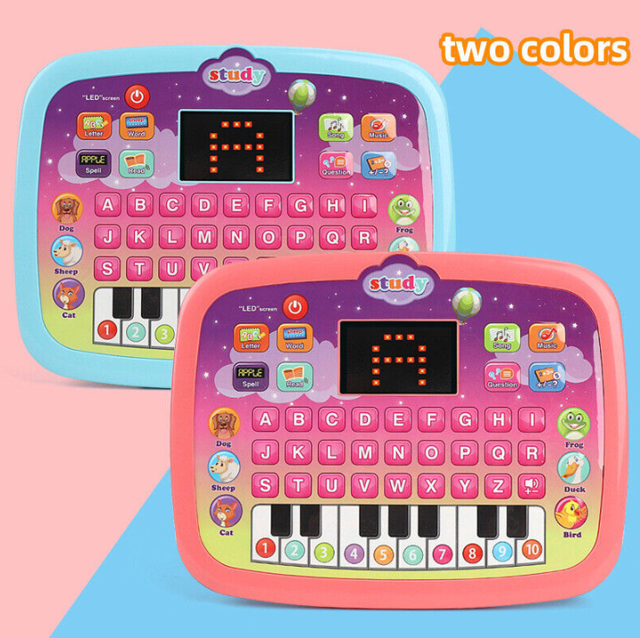 Kids Tablet Toys With LED Light & Music. features the smooth emulational piano keys. Press the piano key to play piano tunes.
