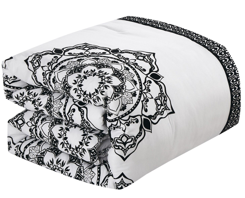 HIG 7-Piece Luxury Embroidery/Print Comforter Set Bed in A Bag -Queen/King Size