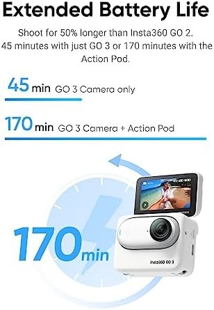 Insta360 GO 3 (64GB) – Small & Lightweight Action Camera, Portable and Versatile, Hands-Free POV, Mount Anywhere, Stabilization, Multifunctional Action Pod, Waterproof, for Travel, Sports, Vlog