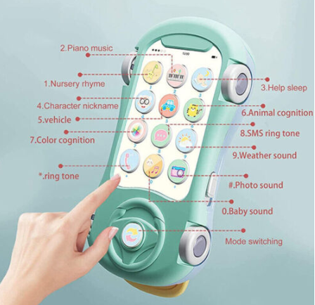 Safety materials: made of qualified echo-friendly soft bite free silicone, Macaron color and car shape design with music, stories and soft light to evoke baby’s attention.