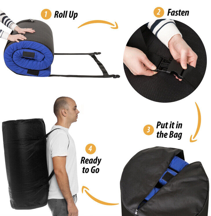MATTRESS - memory foam camping pad measures 75" Length, 30”Width, and 3" Height. This portable mattress is folding in and out in seconds and it's easy to carry and store. FREE packing straps are included in all Hazli floor mattresses packaging.