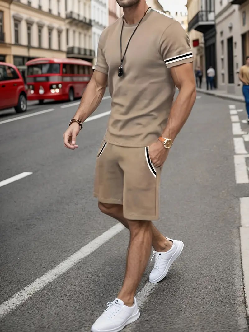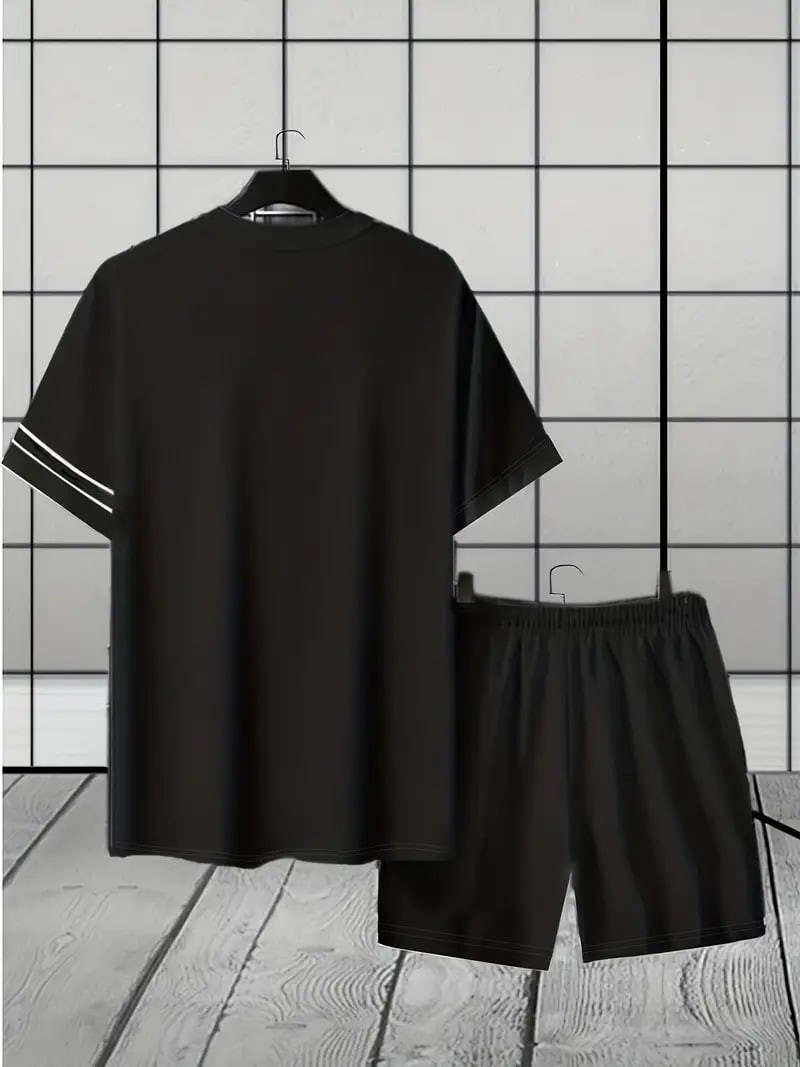Men's Trendy Summer Striped T-Shirt Shorts Set, Oversized Casual Sports 2Pcs Outfits, Men's Clothing, Plus Size