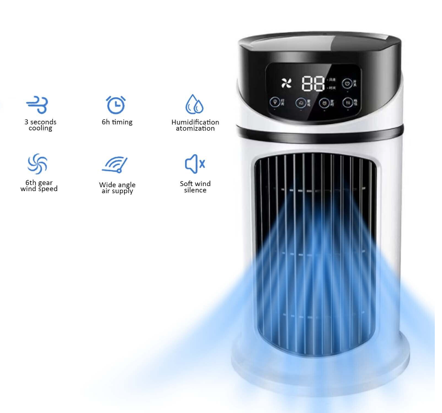 Mini Air Conditioner Product Name: Desktop Air Conditioning Fan Product color: black and white Body material: ABC Water tank volume: 300ML Executive standard: Q/LH001-2019 Rated voltage: 5V 2A Product size: 24.7*14.5*5cm /9.72*5.7*1.96inch Product weight: 0.77KG Package size: 25cm*19cm*19cm/9.84*7.48*7.48inch Package Included: 1 X Portable Air Conditioner Fan 1 X USB cable |