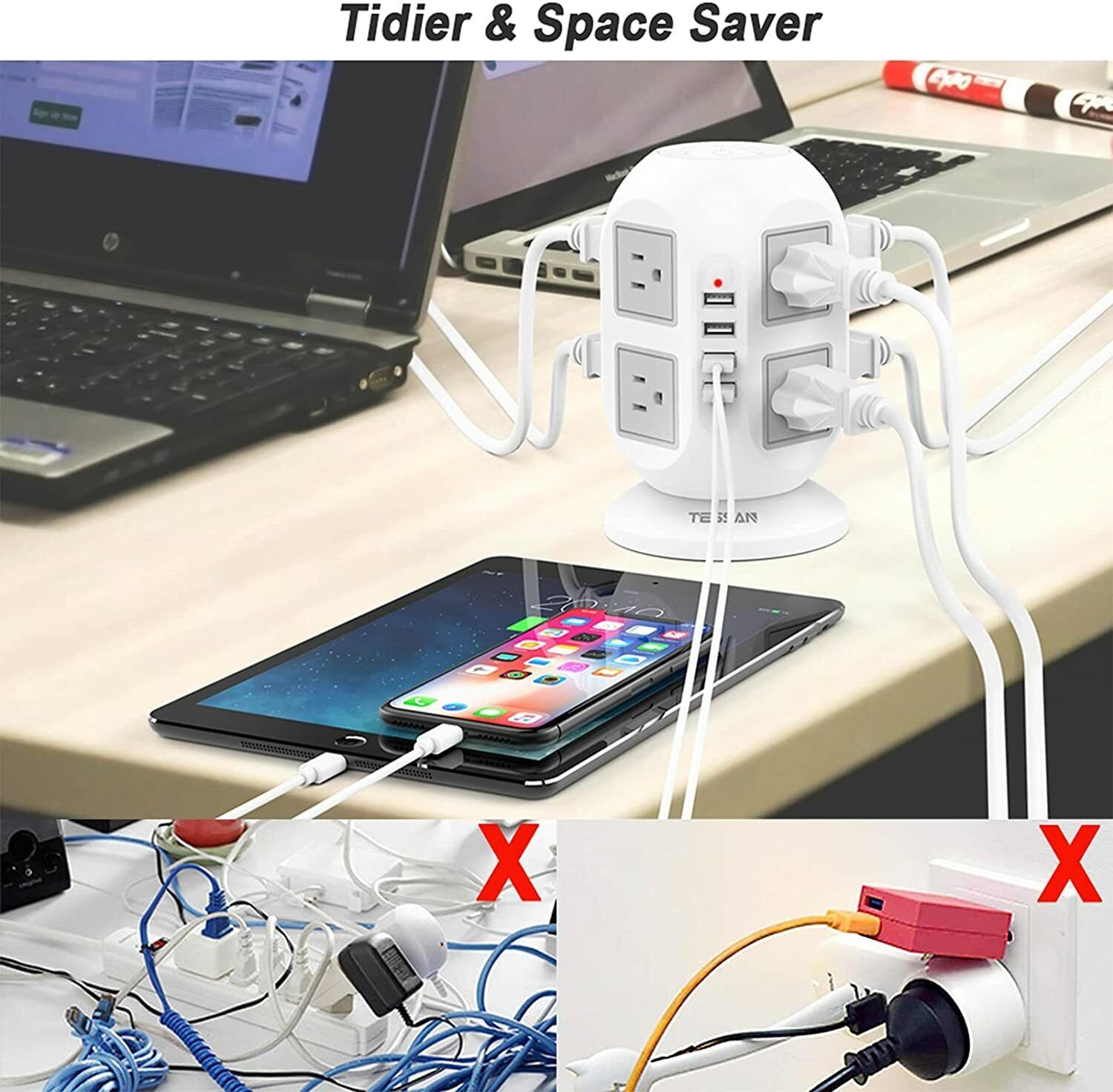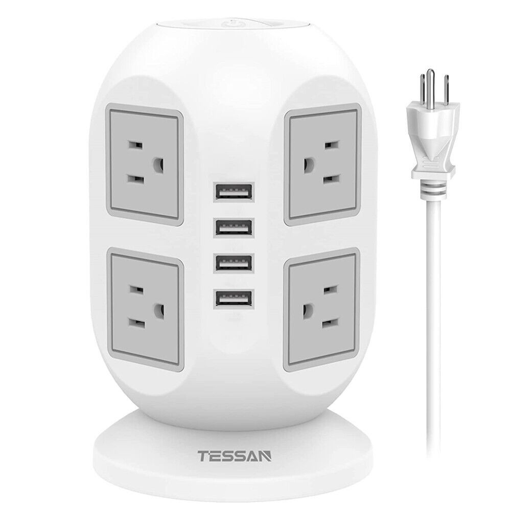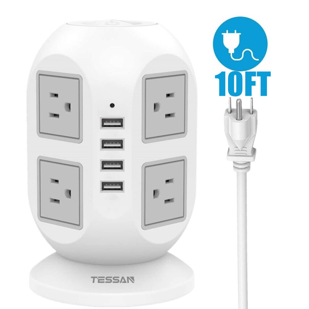 Power Strip Tower Surge Protector with 8 Outlet 4 USB 6/10/15 FT Extension Cord
