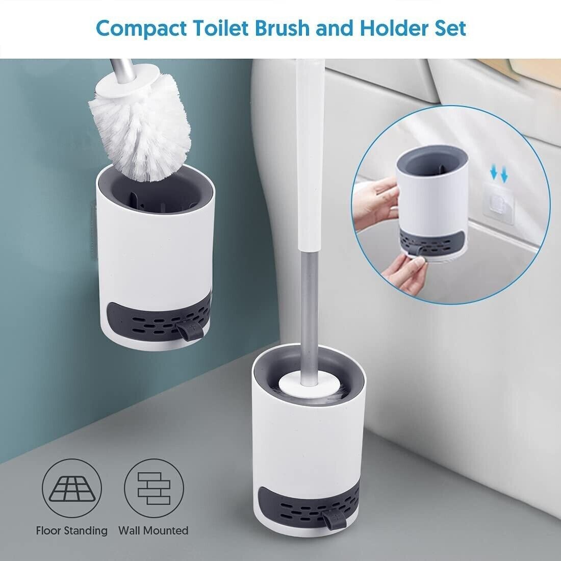 Toilet Brush and Holder Caddy Plunger Set 2 Pack-Hard Bristles Toilet Bowl Brush