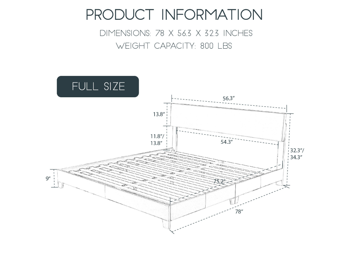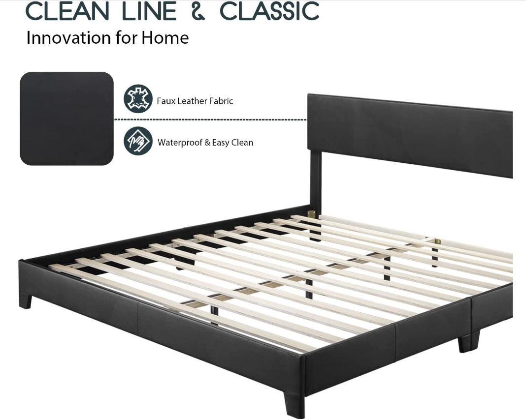 King Size Leather Low Profile Sleigh Platform Bed Frame with Headboard,White